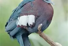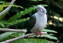 绿皇鸠体形比绿鸠类和果鸠类大,体长36-38厘米,体重508-600克。嘴也较大,嘴基扩张,身体上的杂色通常较少。头部、颈部和下体为鸽灰色,微缀粉葡萄红色,尾下覆羽为暗栗色。前额和额为白色,…全部>>