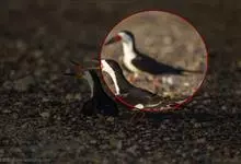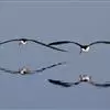 黑剪嘴鸥:是鸟纲、鸥科的物种。雄鸟体型往往比雌鸟大。雄鸟约365克,雌鸟平均265克,个体长约46厘米,翼展112厘米。是一种下喙比上喙长、瞳孔和猫的瞳孔相似的鸥亚科剪嘴鸥族鸟类。下体和前额白色。…全部>>