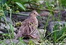 哀鸽,又名“泣鸽、哀鸠”,是鸠鸽科哀鸠属的鸟类动物。体形修长,全身羽毛为浅灰褐色,翅膀下部颜色较浅,尾羽尖,翅膀上有几块黑色的斑点,头和胸腹部为粉红色。雄性哀鸽在颈部两侧各有一小片具有金属光泽的羽毛。…全部>>