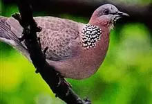 棕斑鸠,是鸽形目鸠鸽科斑鸠属鸟类。整个头和颈淡粉红色,头顶和前额较暗,颊、喉较淡,前颈基部两侧羽毛黑色具宽阔的棕色端斑,使前颈两侧形成黑色斑点状的黑斑。…全部>>
