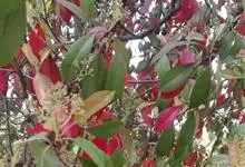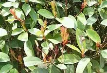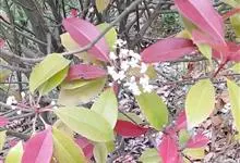 红叶石楠 是蔷薇科,石楠属杂交种,为常绿小乔木或灌木,乔木高可达5米、灌木高可达2米。叶片革质,长圆形至倒卵状、披针形,叶端渐尖,叶基楔形,叶缘有带腺的锯齿,花多而密,复伞房花序,花白色,梨果黄红色,…全部>>