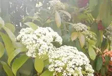 石楠 Kalkman),是蔷薇科石楠属的常绿乔木,高5~12米,株型紧凑,树冠圆球形。树枝为褐灰色;鳞片为褐色,没有毛;叶片革质,长椭圆至侧卵状椭圆形,有锯齿,新叶红色光亮。复伞房花序,白色小花,…全部>>