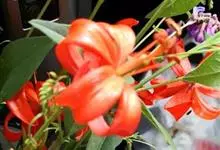 青岛百合是百合科百合属的多年生草本植物;鳞茎近球形;鳞片披针形,白色,无节;叶轮生,矩圆状倒披针形、倒披针形至椭圆形,先端急尖,基部宽楔形,具短柄,两面无毛;苞片叶状,披针形;花橙黄色或橙红色,…全部>>
