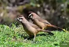 白颊噪鹛是雀形目噪鹛科噪鹛属鸟类,又称土画眉、小画眉、小噪鹃。成鸟额至头顶栗褐色,长眉纹、眼先和颊纹棕白色,眼后至耳羽深褐色,…全部>>