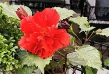 重瓣朱槿(酸醋花、月月开)锦葵目 > 锦葵科 > 木槿属 > 重瓣朱槿