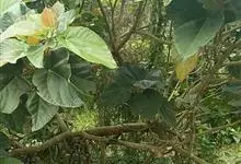 大果榕是桑科榕属的小乔木,株高可达10米;幼枝被柔毛;叶互生,宽卵状心形或近圆形;雄花无梗、匙形、花丝长,雌花生于雌株榕果内,子房白色;榕果簇生于树干基部或老茎短枝上、扁球形或陀螺形,…全部>>