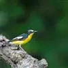 棕胸蓝姬鹟:属小型鸣禽,体长10-13厘米,体重6-10克,是一种体型很小的灰蓝及棕色鹟,雌雄羽色不同,雄鸟羽色艳丽,雌鸟羽色暗淡。雄鸟上体深蓝色,胸橙黄色,下腹灰白色。亚成鸟具褐色斑驳。…全部>>