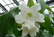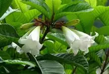 清明花是夹竹桃科、清明花属常绿高大藤本,叶长圆状或倒卵形;聚伞花序顶生,着花3-5朵,有时更多;花大,漏斗形,白色,有香气,花冠5裂片;种子有白色绢质种毛。果期秋冬季。原产云南、印度,…全部>>