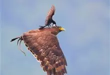 白肩雕:又名御雕,是大型猛禽。体长73-84厘米。体羽黑褐色,头和颈较淡,肩部有明显的白斑,在黑褐色的体羽上极为醒目,很远即可看见,这是区别其他雕的主要特征。滑翔时两翅平直,滑翔和翱翔时两翅亦不上举…全部>>