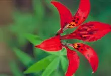 山丹是百合科百合属的多年生草本植物。鳞茎卵形或圆锥形,鳞片长圆形或长卵形,白色;叶散生茎中部,线形,边缘有乳头状突起;花单生或数朵成总状花序,花鲜红色,常无斑点,花被片反卷,…全部>>
