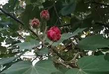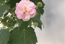 木芙蓉,锦葵科木槿属落叶灌木或小乔木。小枝上有细绒毛;叶片为卵状心形,托叶为披针形,常早落;花单生,花萼为钟形,花冠初为白色或淡红色,后逐渐变为深红色;果实为扁球形,有淡黄色的毛附着。花期8到10月。…全部>>