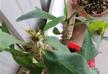 虎刺梅:别称铁海棠,是蔓生灌木植物。茎多分枝,长60-100厘米,直径5-10毫米,具纵棱,密生硬而尖的锥状刺,刺长1-1.5厘米,直径0.5-1.0 毫米,常呈3-5列排列于棱脊上,呈旋转。叶互生…全部>>