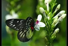 报喜斑粉蝶是粉蝶科斑粉蝶属的一种动物,又名红肩粉蝶、藤粉蝶等。幼虫群集性很强,从同一卵块孵化出的幼虫,幼龄期全部群集在一起取食,高龄幼虫常分散成小群。幼虫群集危害叶片,造成秃枝,严重者可将树吃成光杆,…全部>>