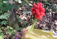 东北南星是天南星科天南星属植物。块茎小,近球形,直径1-2厘米。鳞叶2,线状披针形,锐尖,膜质,内面的长9-15厘米。叶1,叶柄长17-30厘米。花序柄短于叶柄,长9-15厘米。浆果红色,…全部>>