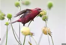 酒红朱雀小型鸟类,体长13~15厘米。雄鸟通体深红色,头部深朱红或棕红色,下背和腰玫瑰红色,眉纹粉红色而具丝绢光泽。两翅和尾黑褐或灰褐色、具暗红色狭缘,内侧两枚三级飞羽具淡粉红色先端。…全部>>