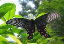 宽尾凤蝶是凤蝶科、宽尾凤蝶属昆虫。翅展115-130毫米。体、翅黑色,翅面散生黄色鳞片;前翅前缘色深,后翅外缘波状,波谷红色,。雄性外生殖器上钩突窄小,骨化。雌性外生殖器产卵瓣较长;交配孔宽大,…全部>>