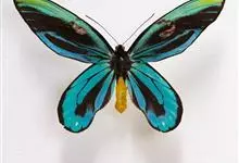 亚历山大女皇鸟翼凤蝶,又称大鸟翼蝶,是鳞翅目凤蝶科鸟翼蝶属蝴蝶;翅膀圆阔、褐色,雌性翅膀上会点缀着耀眼的白色斑纹;雄性翅膀上则闪耀着红蓝色的光泽。亚历山大女皇鸟翼凤蝶幼时很黑,身上长有红色的结节,…全部>>