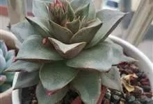 锦晃星是景天科、石莲花属多肉植物。多年生小灌木状多浆植物,灰绿色卵状倒披针形肥厚肉质叶轮状互生,全缘,椭圆尖头,长3-4厘米,宽2-2.5厘米,厚约1厘米,玲凉季节阳光下,叶端及上缘呈红色。…全部>>