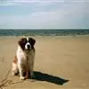 圣伯纳犬,别名巴里汉德,属于大型工作犬,肩高约65~90厘米,体重约50~90千克。圣伯纳犬身体强壮,被毛红褐色和白色相间,头圆而宽大。颈部强壮,胸宽深,背直。前肢长直,腕关节略前倾,后肢腿骨粗壮,…全部>>