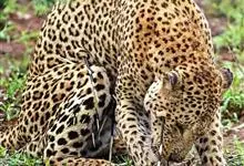 非洲豹是豹的指名亚种,体重40-90千克,时速可达70km。肌肉发达,脖子和头部结实有力。头小尾长,四肢短健;尾尖粗重,有助于它在高速奔跑时,保持身体的平衡。毛被黄色,满布黑色环斑;头部的斑点小而密,…全部>>