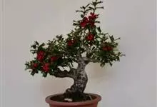 火棘 H. L. Li)是蔷薇科火棘属常绿灌木,老枝呈暗褐色;叶片呈倒卵形,边缘有钝锯齿,齿尖向内弯,两面皆无毛;叶柄短,无毛或嫩时有柔毛;花序是复伞房状,花瓣呈白色近圆形;果球近圆形,…全部>>
