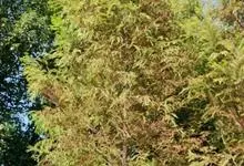 水杉,杉科水杉属植物,落叶乔木。其植株高大,树皮灰褐色,呈长条形,幼树树冠尖塔形,老树则为广圆头形;叶相对而生,叶色为绿,呈羽状,扁平且有绒毛;雌雄同株,球果,熟时深褐色;种子扁平,…全部>>