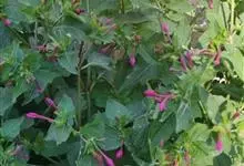 即紫茉莉,英文名:Four-o'clock,Marvel of Peru,为紫茉莉科、紫茉莉属多年生草本植物,一年生栽培。株高50~80cm。根粗壮,茎多分枝而散生。叶对生,卵形或心脏形。花数朵簇生…全部>>