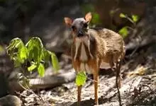 鼷鹿,别名小鼷鹿,共38个亚种。体形略比野兔大,体重1.3~2.0kg,体长420~630mm,肩高约200mm,是仅次于蹄兔目成员最小的有蹄类动物,也是鼷鹿科种体型最小的一种。面部尖长,无角,…全部>>
