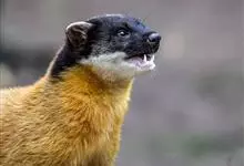 黄喉貂,是食肉目鼬科陆栖食肉类动物,又名青鼬、密狗、黄猺。体长小而轻;吻尖耳大;四肢短;爪发达;尾圆柱状;冬季毛被色泽鲜艳,吻端至颈背部黑褐色,下颏白色并向后延伸至耳下,…全部>>