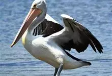 澳大利亚鹈鹕是一种大型涉禽,体重达13千克。生活于沿海及河川、湖泊等处。飞行力强而悠逸,常群飞群栖,极善于游泳,但不会潜水。游泳时张口捕鱼,将捕得的鱼兜入喉囊内。有时结群,排成长线,…全部>>