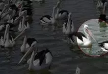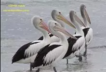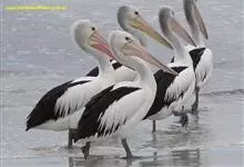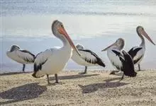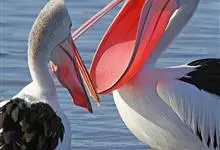 澳大利亚鹈鹕是一种大型涉禽,体重达13千克。生活于沿海及河川、湖泊等处。飞行力强而悠逸,常群飞群栖,极善于游泳,但不会潜水。游泳时张口捕鱼,将捕得的鱼兜入喉囊内。有时结群,排成长线,…全部>>