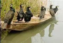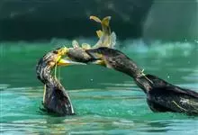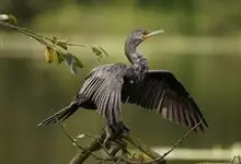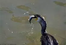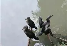 普通鸬鹚是属于鲣鸟目鸬鹚科鸬鹚属鸟类,又名水老鸦、鱼鹰、乌鬼、黑鱼郎等。体长720—900毫米,雌雄同型。通体黑色,有绿褐色金属光泽;喙厚重,喙基和喉囊橙黄色,脸颊及喉白色;夏羽颈及头饰具白色丝状羽,…全部>>