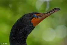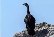 海鸬鹚:俗名乌鹈。典型的海上鸬鹚。体长约70厘米,体羽黑色具光泽。脸红色,与红脸鸬鹚甚似,但繁殖期冠羽较稀疏而松软,脸部红色不及额部但脸颊红色较多,幼鸟及非繁殖期的鸟脸粉灰,体型略小。虹膜蓝色;嘴黄…全部>>