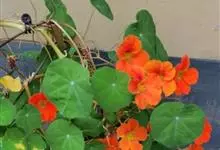 旱金莲是旱金莲科旱金莲属蔓生一年生草本植物。叶互生,叶柄向上扭曲,盾状,叶圆形,具波状浅缺刻,下面疏被毛或有乳点;花黄、紫、桔红或杂色,花托杯状,花瓣为圆形,边缘具缺刻;果实为扁球形;花果期6-10月,…全部>>