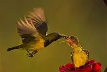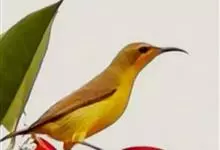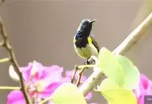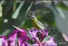 黄腹花蜜鸟是雀形目太阳鸟科花蜜鸟属鸟类。体型较小、喙略短而弯、腹部黄色。雄鸟繁殖季节颏及胸黑紫色并泛金属光泽,具有绯红色及灰色胸带,将上腹部黑色斑与前胸隔开,肩斑为橙黄色丝质羽,上体橄榄绿色,…全部>>