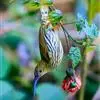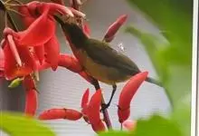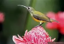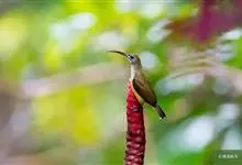 纹背捕蛛鸟:为太阳鸟科捕蛛鸟属的鸟类。是太阳鸟科中体型较大的一种,体重25-45克,体长160-210毫米。嘴粗长而尖且向下弯曲。上体橄榄黄色具黑色中央斑纹。下体淡黄白色满布黑色纵纹,尾具黑色次端斑。…全部>>