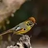 斑喉希鹛小型鸟类,体长14~17厘米。头具羽冠,前额和头顶羽冠金黄褐色,头侧灰黄色具黄色眼圈。上体灰橄榄绿色,外侧飞羽表面橘黄色、基部具黑色翼斑;内侧飞羽表面淡灰色具黑色亚端斑和白色端斑。尾羽黑色,…全部>>