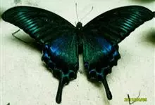 蓝凤蝶,Papilio protenor Cramer,凤蝶科凤蝶属的一种昆虫。翅展95~120mm。翅黑色,有靛蓝色天鹅绒光泽。雄蝶后翅正面前缘有黄白色斑纹,…全部>>