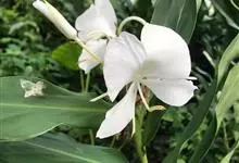 姜花又名野姜花。是姜科姜花属的多年生草本植物,茎高1-2米;叶片长圆状披针形或披针形,叶面光滑,叶背被短柔毛;穗状花序顶生,椭圆形,花芬芳,白色;蒴果卵状三棱形,微黄绿色;种子鲜红色,具橘红色的假种皮。…全部>>