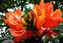 火焰木,又名苞萼木、喷泉树,为紫葳科常绿大乔木,株高10—20米,叶为奇数羽状复叶,对生,较大,斜椭圆形,全缘,纸质,叶面深绿色。 全部>>