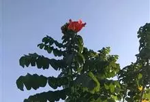 火焰树是紫葳科、火焰树属乔木,树皮平滑,灰褐色。奇数羽状复叶,对生,连叶柄长达45厘米;小叶13-17枚,叶片椭圆形至倒卵形,伞房状总状花序,顶生,密集;被褐色微柔毛,具有明显的皮孔;花冠一侧膨大,…全部>>