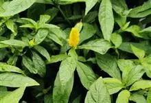金苞花是爵床科、金苞花属的常绿草本植物。叶长圆形或披针形,先端渐尖,基部通常楔形,下面主脉被微柔毛;顶生穗状花序由密、短的总花梗组成,卵形苞片膜质,下部的近心形,小苞片披针形或匙形,与花萼等长,…全部>>