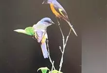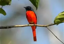 灰喉山椒鸟:共有8个亚种。体长18-22厘米。雄鸟头部和背亮黑色,腰、尾上覆羽和下体朱红色,翅黑色具一大一小的两道朱红色翼斑。中央尾羽黑色,外侧尾羽基部黑色,端部红色。…全部>>
