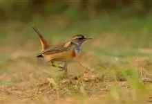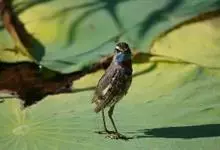 蓝点颏亦称“蓝喉歌鸲”,通称蓝靛颏儿。身体大小和麻雀相似,体长12-13厘米,体重17-18克。头部、上体主要为土褐色。眉纹白色。尾羽黑褐色,基部栗红色。颏部、喉部辉蓝色,下面有黑色横纹。下体白色。…全部>>