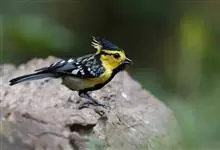 黄颊山雀是雀形目山雀科山雀属鸟类。雄鸟额、头顶和羽冠为具有光泽的黑色;额基、眼先、眉纹、脸颊和耳羽等头颈侧为鲜艳的明黄色;贯眼纹黑色;后颈亦具一黄斑;上体灰黄绿色,羽缘黑色;尾羽黑色具蓝灰色羽缘,…全部>>