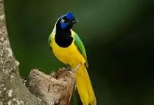 冕雀:共有4个亚种。体长20-21厘米,体重34-49克。具蓬松的黄色长型冠羽。雌鸟似雄鸟,但喉及胸深橄榄黄色,上体沾橄榄色。不会被误认的体大的黄色及黑色山雀。混群栖于原始林及次生林的林冠层,…全部>>