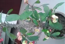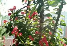 虎刺梅:别称铁海棠,是蔓生灌木植物。茎多分枝,长60-100厘米,直径5-10毫米,具纵棱,密生硬而尖的锥状刺,刺长1-1.5厘米,直径0.5-1.0 毫米,常呈3-5列排列于棱脊上,呈旋转。叶互生…全部>>