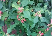 猩猩草:常绿或半常绿灌木,盆栽时株高0.5米-2米,在亚热带地区可长到6米以上。茎直立而光滑,单叶互生,卵状椭圆形至阔披针形,具不规则的深缺刻。长10-15厘米。花小,有蜜腺,排列成密集的伞房花序。…全部>>