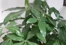 瓜栗 Walp. ),俗称发财树,木棉科小乔木,高4-5米,树冠较松散,幼枝栗褐色,无毛。小叶具短柄或近无柄。花单生枝顶叶腋;花梗粗壮,被黄色星状茸毛,脱落;萼杯状,近革质;花瓣淡黄绿色,狭披针形…全部>>