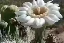 仙人球花 仙人掌科,仙人球属。植株单生或成丛。幼株球形,老株长成圆筒状,高可达75厘米,直径12-15厘米。球体暗绿色,具棱11-12。刺锥状,黑色,长1-1.5厘米。花着生于球体侧方,大型嗽喇叭状…全部>>